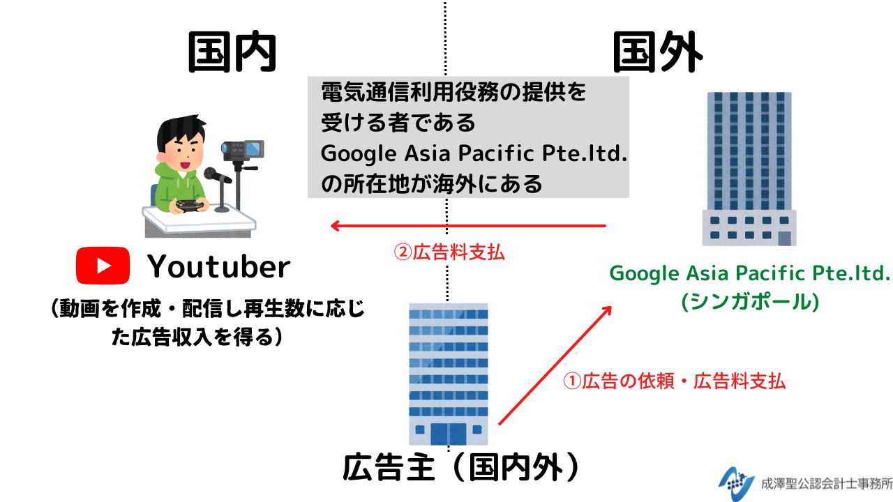 先ほどの話は、あくまでYoutuberの取引の相手先であるGoogle Asia Pacific Pte.ltd.が海外にあるから不課税取引になったという話であって、